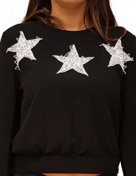 Maglia Donna Fashion modello con lavorazione applicazioni stelle metallo e paillettes per chi vuole vestire alla moda