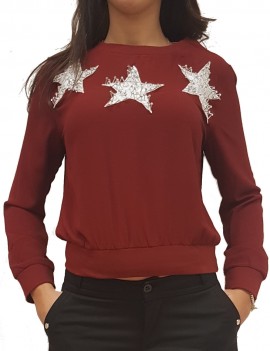 Maglia Donna Fashion modello con lavorazione applicazioni stelle metallo e paillettes per chi vuole vestire alla moda
