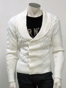 Bellissima maglione  in lana grossa vestibilità slim modello cardigan doppio petto con collo sciallato fantasia unita con tema trecce, ideale per chi vuole vestire alla moda.