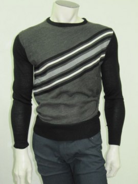 Bellissima maglia in lana vestibilità slim modello girocollo fantasia fasciato, ideale per chi vuole vestire alla moda.