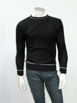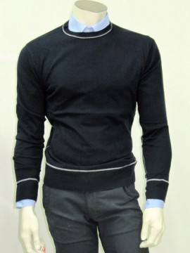 Bellissima maglia in lana vestibilità slim modello girocollo con bordini a contrasto, ideale per chi vuole vestire alla moda.