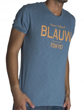 • T-Shirt Uomo Maniche Corte Cotone  superior vintage stampa blauer Slim Fit New Puro Cotone